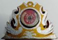 (Reliquia - Lucca) SANTA GEMMA VERGINE .. Piccola teca rotonda con vetro di cm. Diametro 1,8 contenente la reliquia della Santa, sul retro cera lacca a sigillo. Teca montata a posteriori su intaglio in legno a decorara , cm.5x4.